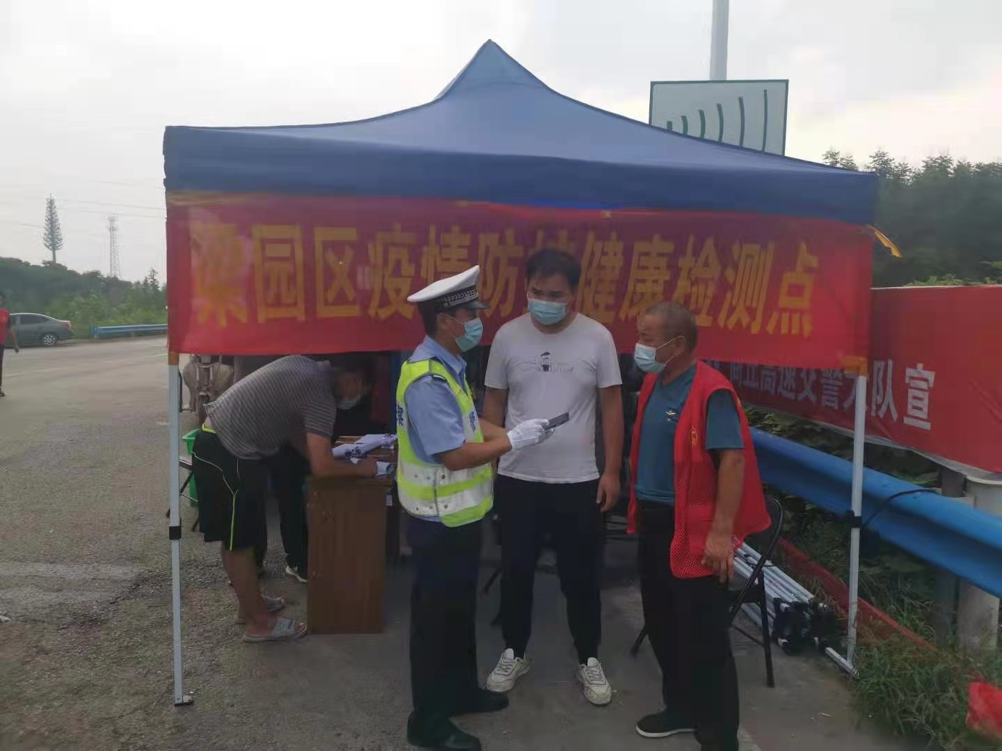 (通讯员 刘传海)连日来,新冠病毒在商丘卷土重来,难缠的“德尔塔”搅动每个人的心。面对疫情防控的严峻考验,商丘市公安局交警支队高速大队全体民警、辅警闻“疫”而动,听令而行,逆向冲锋,顶烈日、耐高温,在党委班子的示范带动下,一支支党员突击队奔赴辖区高速公路疫情防控检查站、各重点区域和高速公路出入口,一场捍卫人民生命健康的阻击战迅速打响,党旗在高速公路出入口、疫情防控检查站、服务区疏导点迎风飘扬。为了路畅民安,他们有的被烈日晒脱一层皮,有的脚底磨出血泡,有的喉咙沙哑,有的舍弃小家……战斗从晨曦初露到夜深人静,无惧烈日酷暑,无畏疫情风险,他们用奋战的身影让警徽更加闪耀,用自己的身躯筑牢一道道安全屏障,决战决胜疫情防控硬仗,誓守古城商丘平安。