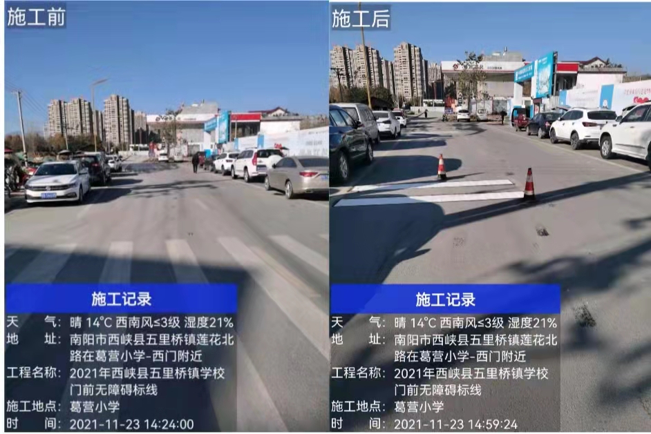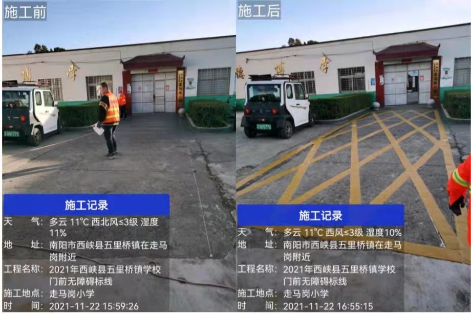 五里桥镇走马岗小学门前网格线施工前后