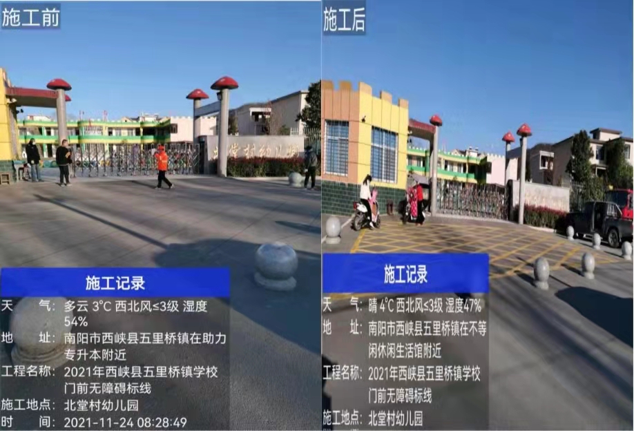 五里桥镇北堂幼儿园门前网格线施工前后