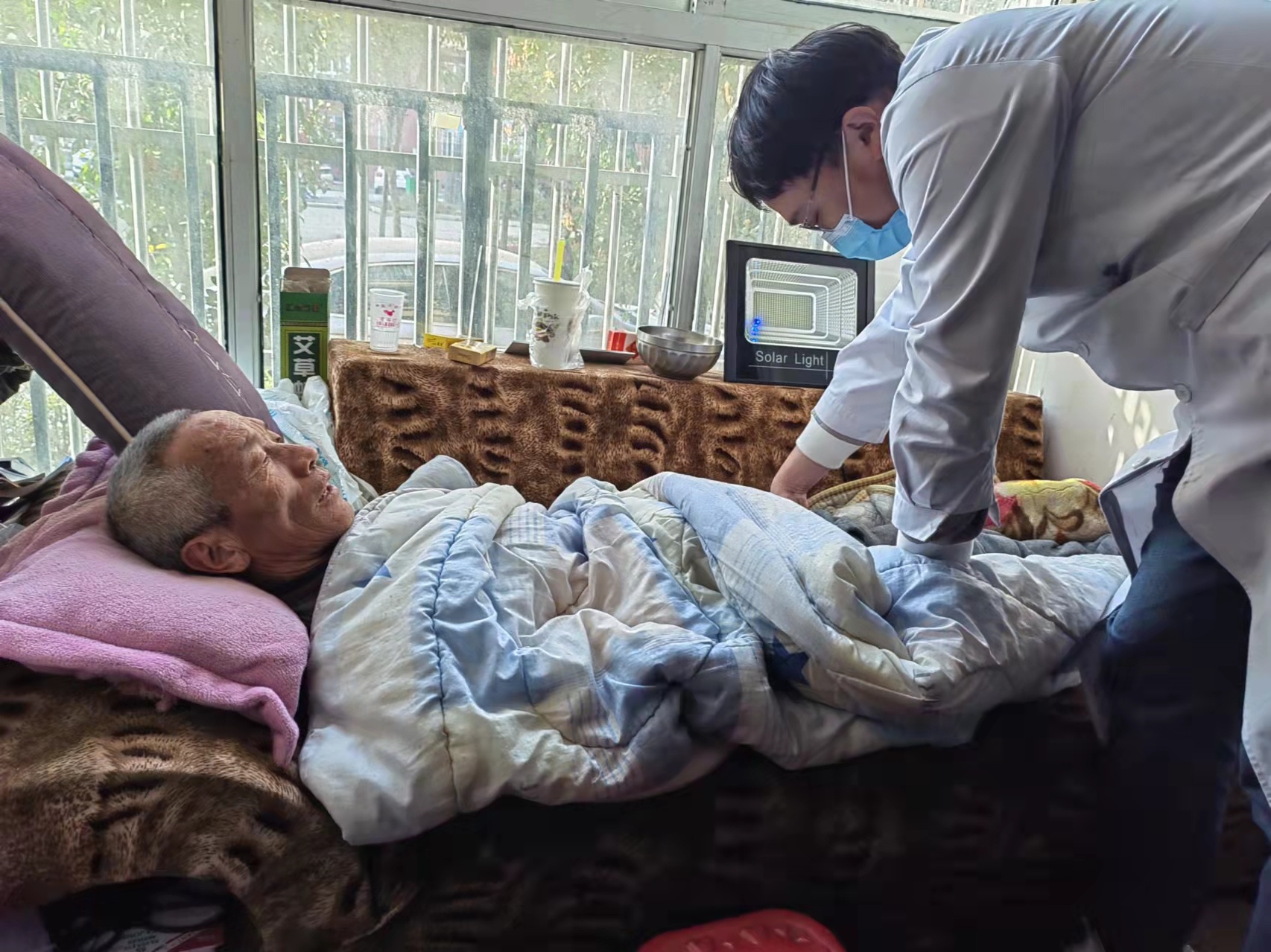 义诊志愿者正在紧张忙碌的为前来检查的居民诊疗时,有位居民到诊台前反映他父亲在前二天不慎摔倒,疑似大腿骨扭伤,卧床不起,想请志愿者到家中为其诊疗。在现场的志愿者张丽主任二话不说,立即带领志愿者赶赴家中,详细对患者摔伤部位进行了全面检查诊疗,初步诊断为大腿骨折,建议患者尽快到医院做进一步检查确诊,以免耽误最佳治疗时期,并对患者和家属进行了安抚,交代了注意事项,留下联系方式,以便患者顺利入院治疗。本次义诊志愿服务活动为300余位居民提供诊疗服务。
