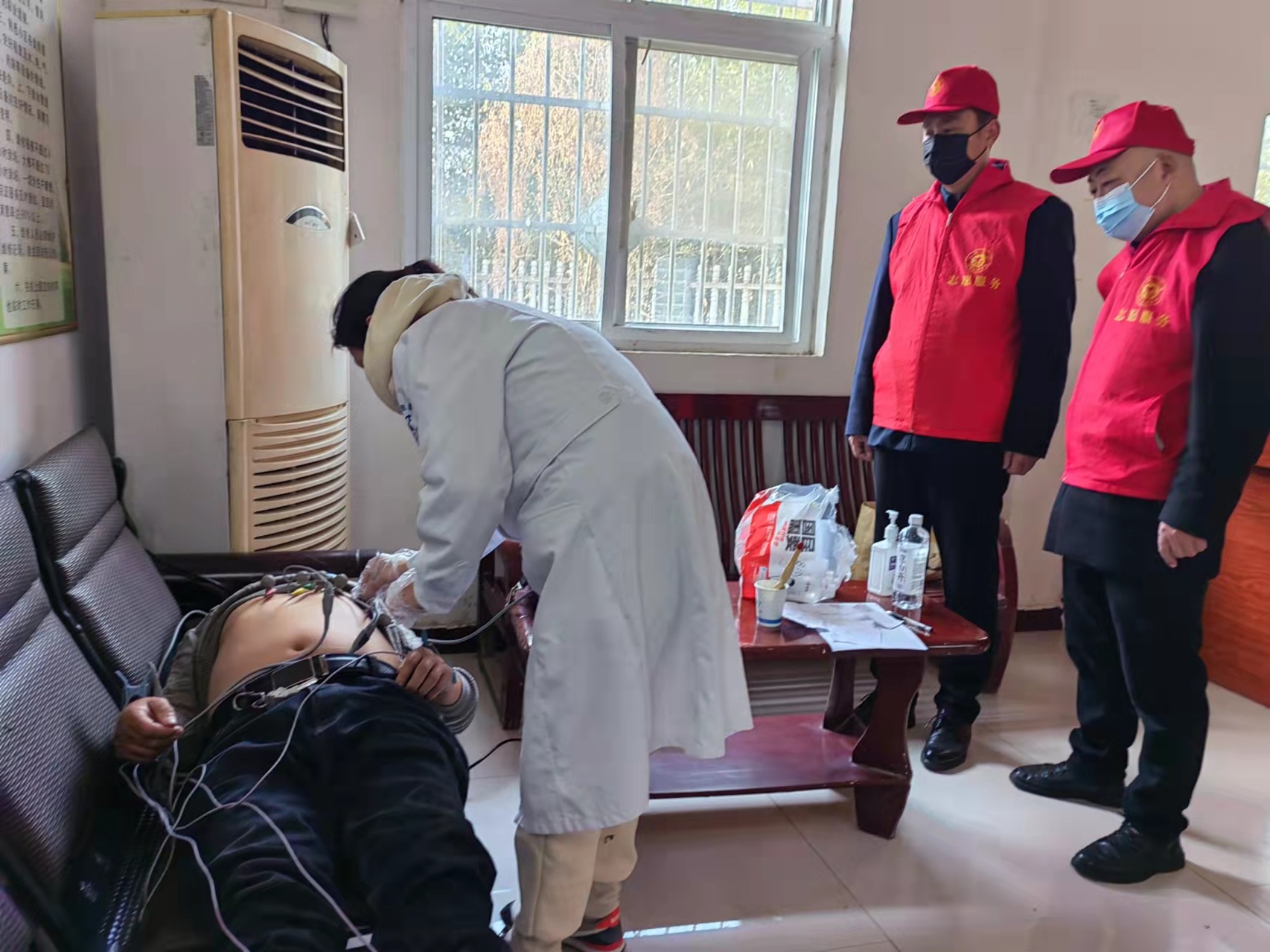 做心电图、彩超检查后的老人