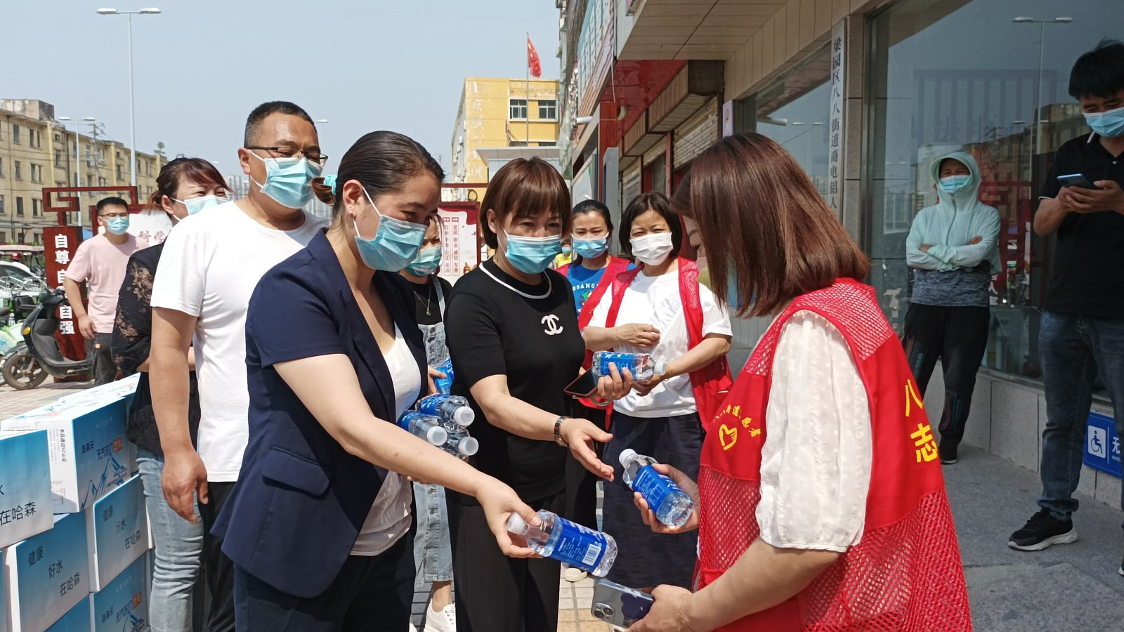 社区是联防联控、群防群控的主战场,是切断疫情扩散蔓延的有效防线,是疫情防控的坚强堡垒和关键阵地。多日来,社区工作人员舍小家、顾大家,冒高温、顶烈日,为疫情防控工作付出了辛勤汗水。在捐赠仪式上,洋森集团营销中心经理贾亚平代表洋森集团将一瓶瓶充满爱心的矿泉水送到了奋斗在一线的社区工作人员、志愿者和“大白”手中,大大激发了抗疫一线工作人员的积极性。