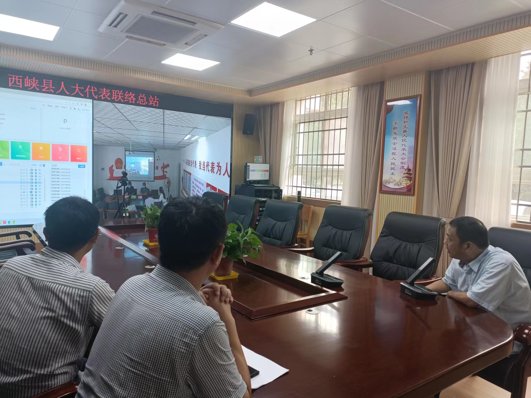 为推进联络站信息化建设,发挥联络站“可视”“可讲”功能,西峡县人大常委会在联络总站安装了LED大屏、电脑、视频会议系统,为各乡镇街道配备了显示器、投影仪、视频摄像头等,实现了与19个乡镇街道联络站的互联互通。通过各代表联络站的“千里眼”、“顺风耳”,使该县人大代表联络总站能够更好地发挥联系代表、选民的作用,进一步夯实人大工作的民意基础。
