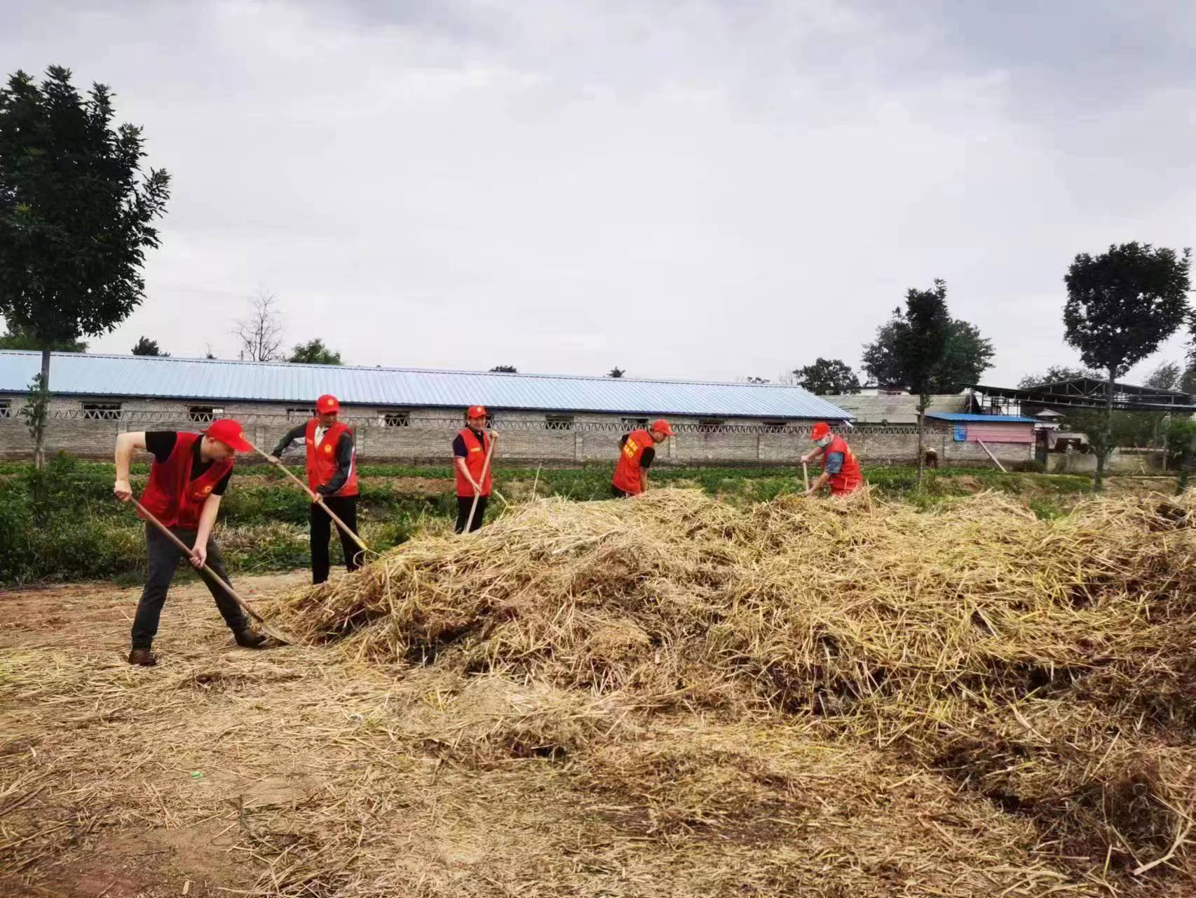 党员志愿者队伍正在处理秸秆
