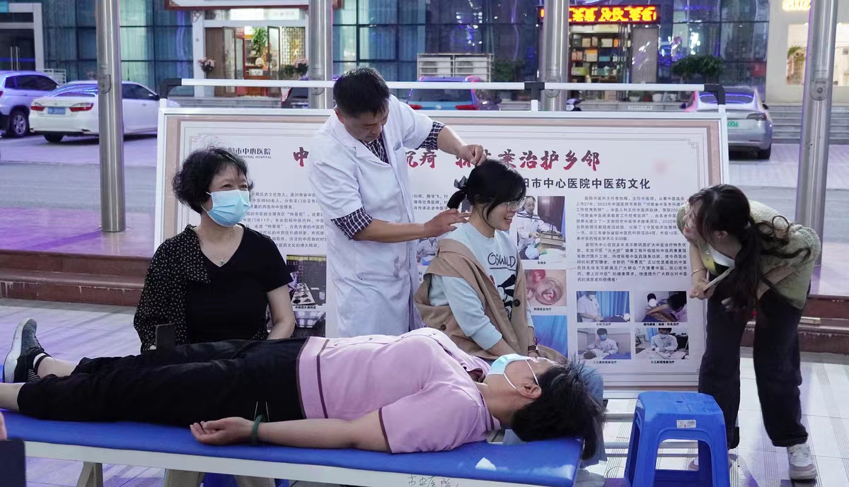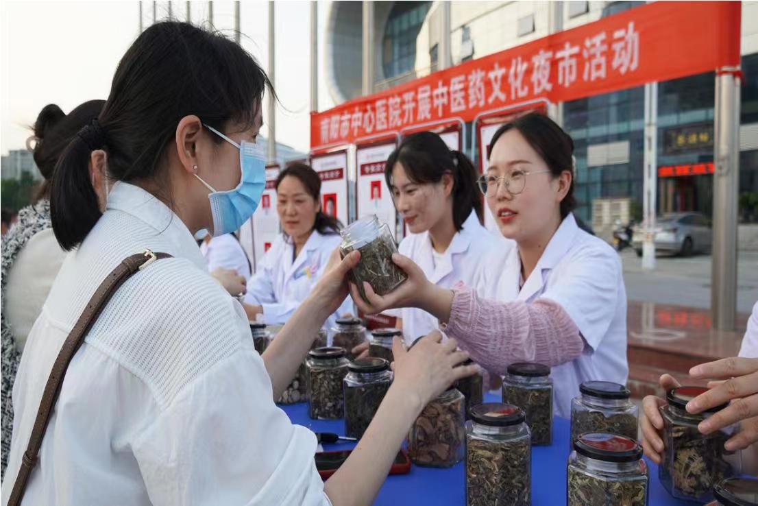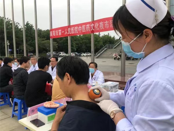 6月5日傍晚,在南阳市第一体育健身中心,人头攒动、熙熙攘攘,由南阳市第一人民医院承办中医药文化夜市活动在这里热闹开市,参加活动的群众一边体验着耳尖放血疗法、头部刮痧、耳穴贴压、肩颈按摩康复、火龙罐综合灸等10余种中医适宜技术,一边辨识中草药、翻阅中医健康保健宣传手册。医护人员免费为群众赠送中药香包,让大家切身感受中医药文化的独特魅力。