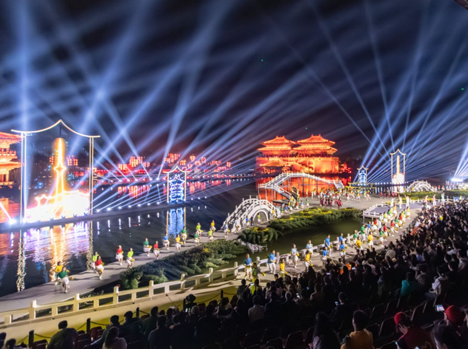 中国开封第41届菊花文化节开幕式文艺演出以跨越开封千年时空为主线,分上篇《千年的汴京》、下篇《时代的开封》两大部分6个节目,以无缝连接的不同情境转换形式进行舞台呈现。