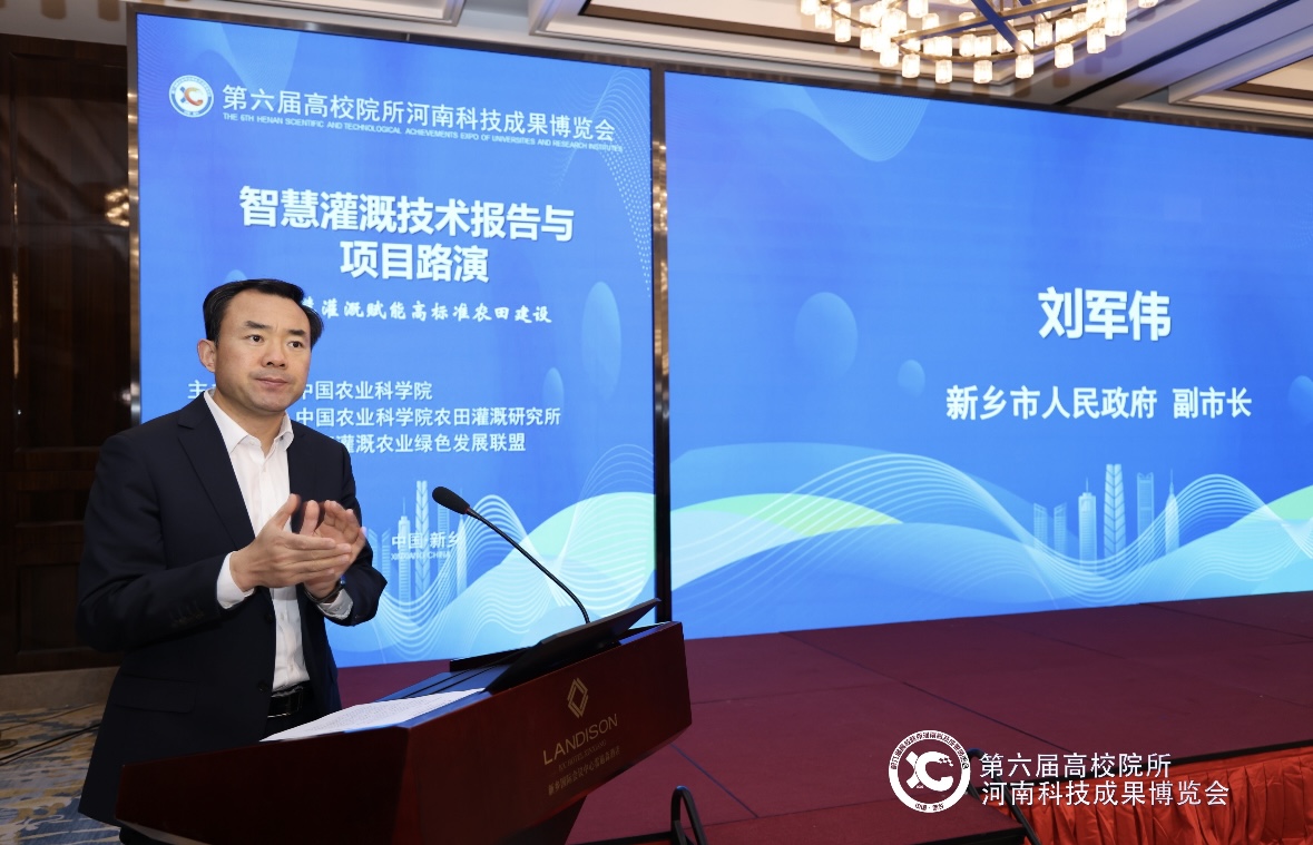 新乡市副市长刘军伟致辞时介绍,2022年中国农科院灌溉所联合新乡国资集团、北大荒农服公司、辉县市人民政府推进“四方两园”联合项目,共同建设中原智慧灌溉装备制造产业园,通过“龙头企业+配套企业+服务主体”模式和适度规模经营+土地流转模式,积极招引上下游配套细分行业龙头企业,初步形成了产业融合、园区建设、订单生产、转化应用于一体的可复制推广的“新乡模式”。已经吸引了国内10家知名灌排企业入驻,打造全国高端智慧灌溉装备研发和制造业产业基地。