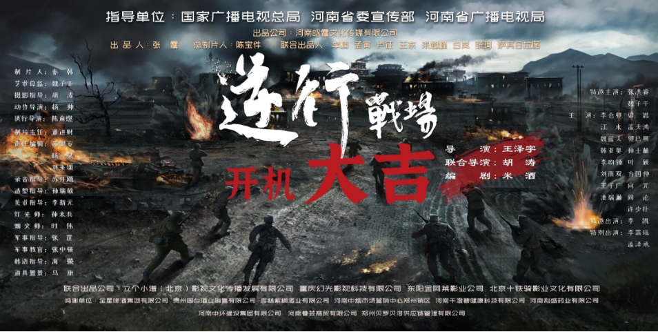5月25日,由河南晗霆文化传媒有限公司出品的主旋律网络电影《逆行战场》在郑州市上街区举行开机仪式。影片出品人张霆、李楠,总制片人陈宝件,导演王泽宇,编剧米酒等主创团队携演员阵容集体亮相,正式开启这部年度战争题材重点作品的拍摄进程。