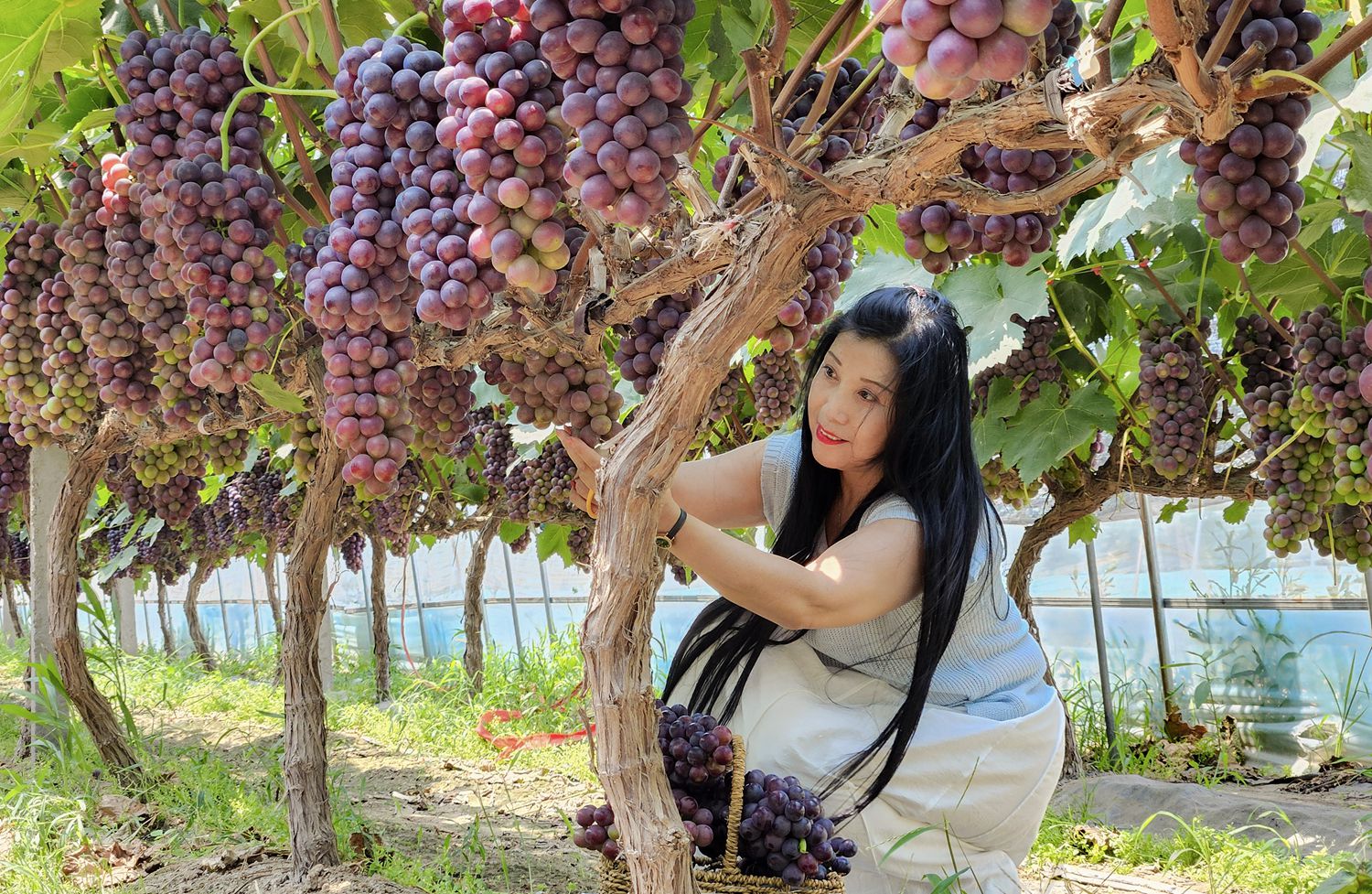 宁陵县阳驿镇党委书记孔伟介绍,阳驿镇素有“葡萄之乡”的美誉,通过“党支部+合作社+农户”模式,全镇葡萄种植面积达3万亩,主要种植夏黑、阳光玫瑰等10多个葡萄品种,年总产量在5万吨以上,按照今年的市场行情,每亩大棚的收入能达到5万元,效益非常可观。