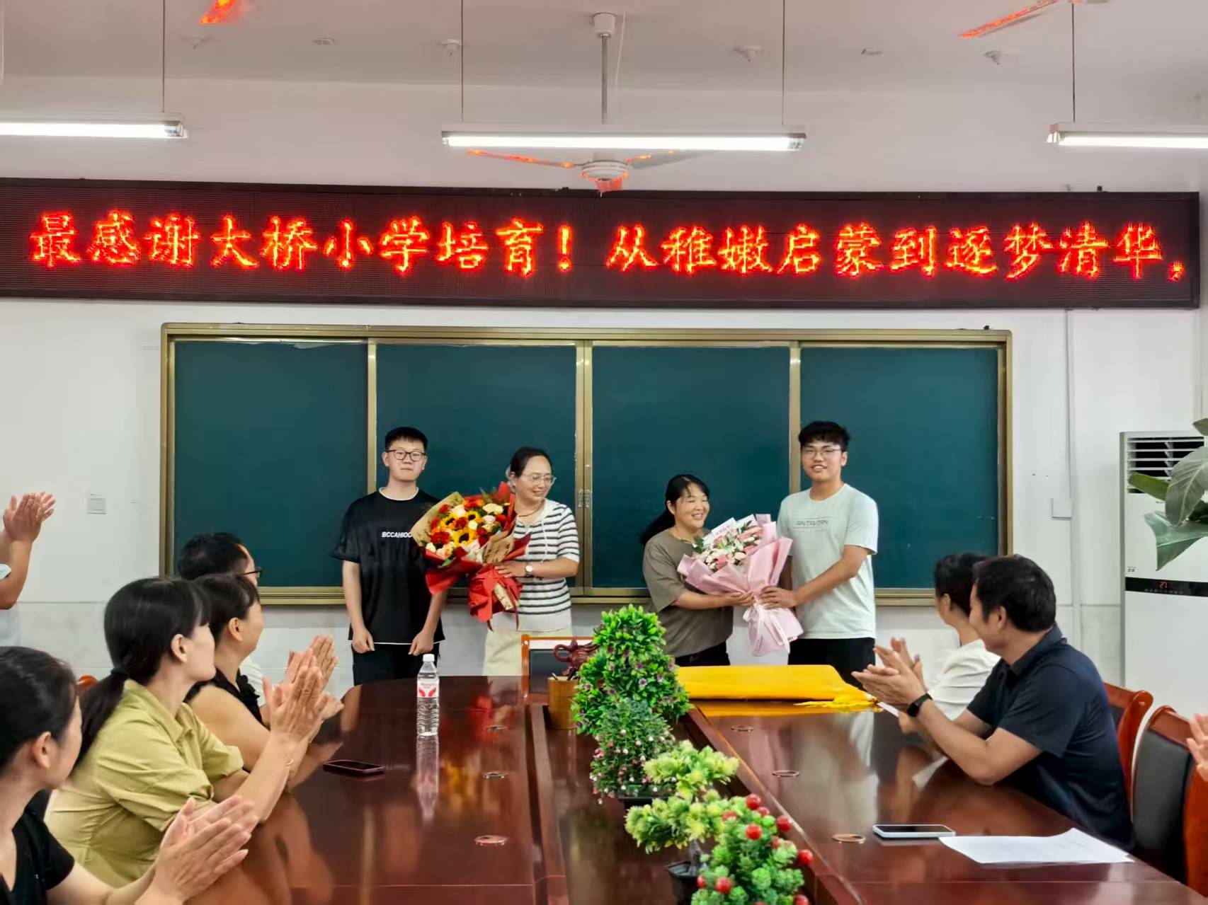 这两位同学在大桥小学学习期间,凭借着勤奋刻苦的学习态度和积极向上的精神风貌,给师生们留下了深刻印象。他们在学业上成绩优异,同时积极参与学校各项活动,全面发展,是同学们学习的榜样。今年高考,他们以出色的成绩被清华大学录取,实现了自己的梦想,也为母校增添了光彩。
