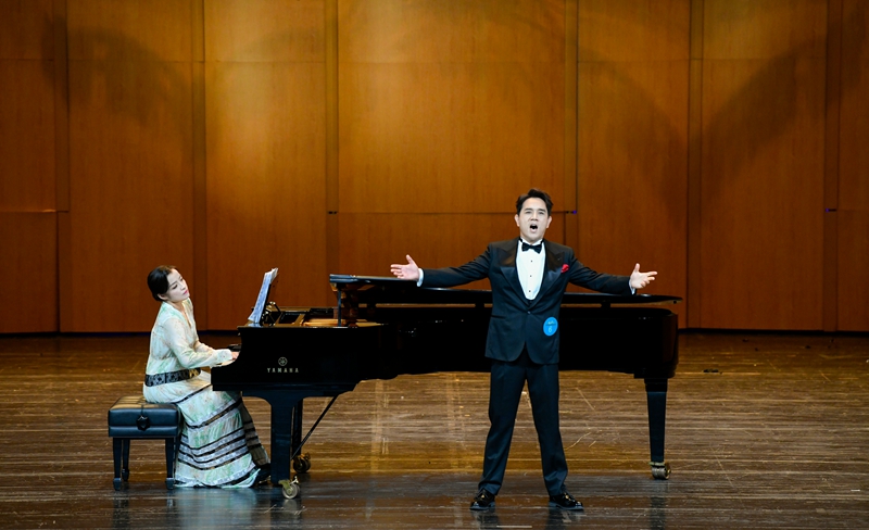 郑州大剧院歌舞剧场内,美声组展演现场同样高潮迭起。湖北选手董研峰的《太阳的儿子》炽热的情感如岩浆奔涌,展现了奋斗者的精神风貌;广东选手孙菲的《月光恋》声音纯净似涓涓细流,细腻声线勾勒出月夜意境和深切思念。上海选手张曦演绎的《忆秦娥·恒山月》,以现代作曲技法重构古典意境,钢琴伴奏与美声唱腔的交融,让“苍山如海,残阳如血”的壮阔图景在耳畔徐徐展开。河南选手聂文超一曲《说给大海》延续首轮《思恋黄河》的深情,胸腔共鸣中抒发对祖国的赤子情怀。