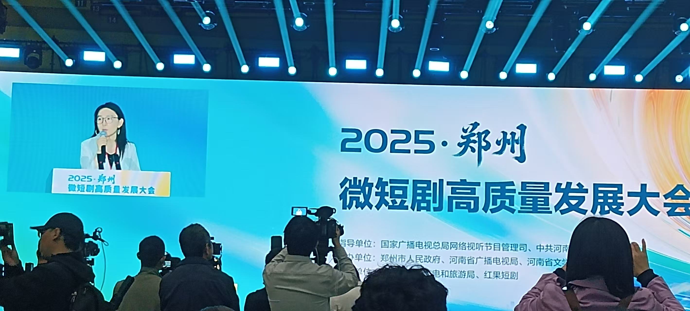 中国国家广播电视总局网络视听节目管理司副司长杨铮、中国抖音集团副总裁李三秋致辞,河南省广播电视局党组书记、局长曹新博主持,郑州市委副书记、市长庄建球推介郑州微短剧行业发展情况。