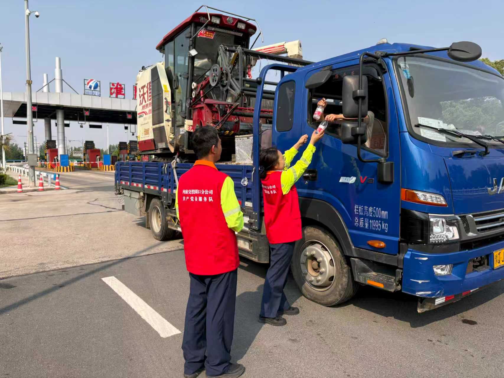 收费站工作人员为跨区机收司乘人员提供暖心服务