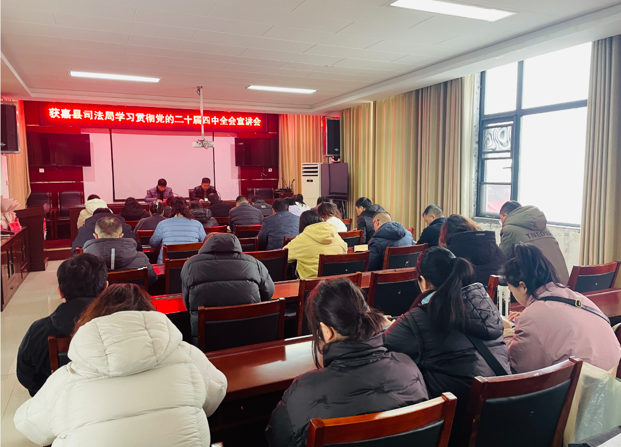 为深入学习贯彻党的二十届四中全会精神,引导广大司法行政干部深刻领会全会精神的核心要义和实践要求,凝聚起干事创业的精神合力,12月23日,获嘉县司法局组织开展学习贯彻党的二十届四中全会精神宣讲会。机关全体党员干部、基层司法所及律师事务所人员共同参与学习。