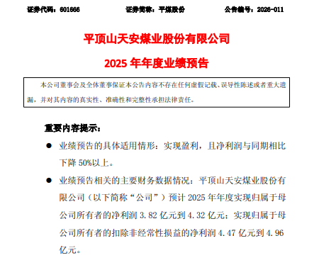 【香港经济导报网讯】1月31日,平顶山天安煤业股份有限公司(证券简称:平煤股份 601666.SH)发布2025年年度业绩预告和经营数据公告。