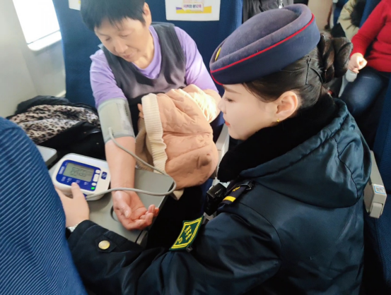 2月10日,高铁一队担当深圳北开往郑州东的G4848次,京银1组党员列车长马瑶,信阳东站开车后,巡视4号车厢时发现一名旅客一直在按压心脏,马瑶第一时间询问情况,得知旅客早上出门时吃降压药有点着急,上车后感觉到明显不适,列车长马瑶携带红十字药箱到位,利用血压计进行测量,并提供相关专业建议,旅客对工作人员的悉心照顾表示十分满意,对马车长的专业处置与贴心服务深表感谢。