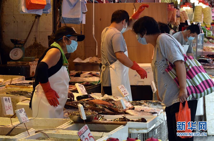 8月1日,市民在香港街头购买鲜鱼。 新华社记者 卢炳辉 摄