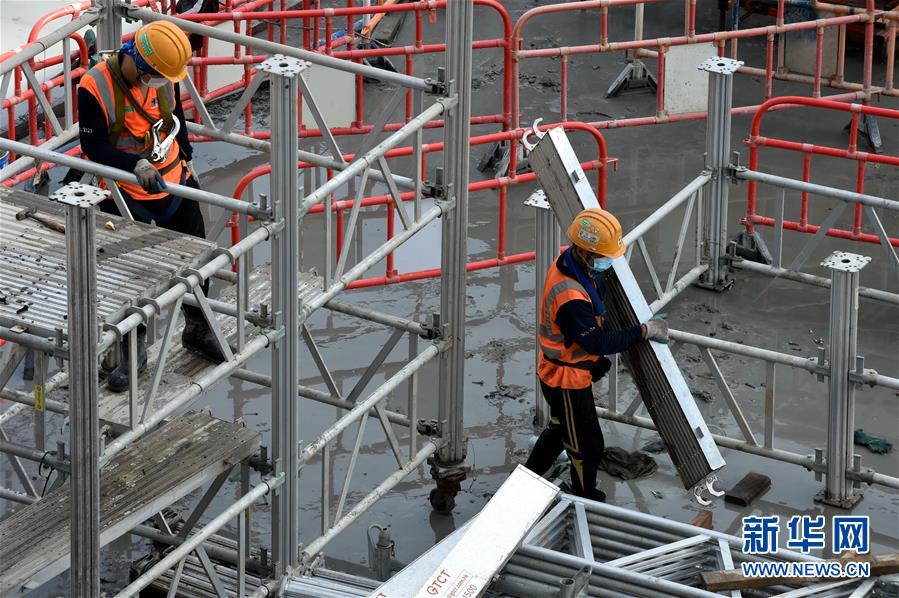 8月1日,工人在香港一工地工作。 新华社记者 卢炳辉 摄
