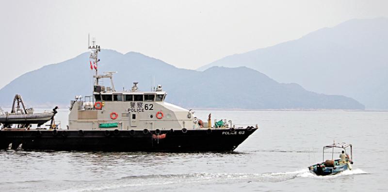 图:香港水警加强执法,巡查暴乱分子偷渡到台湾的海域调查组摄