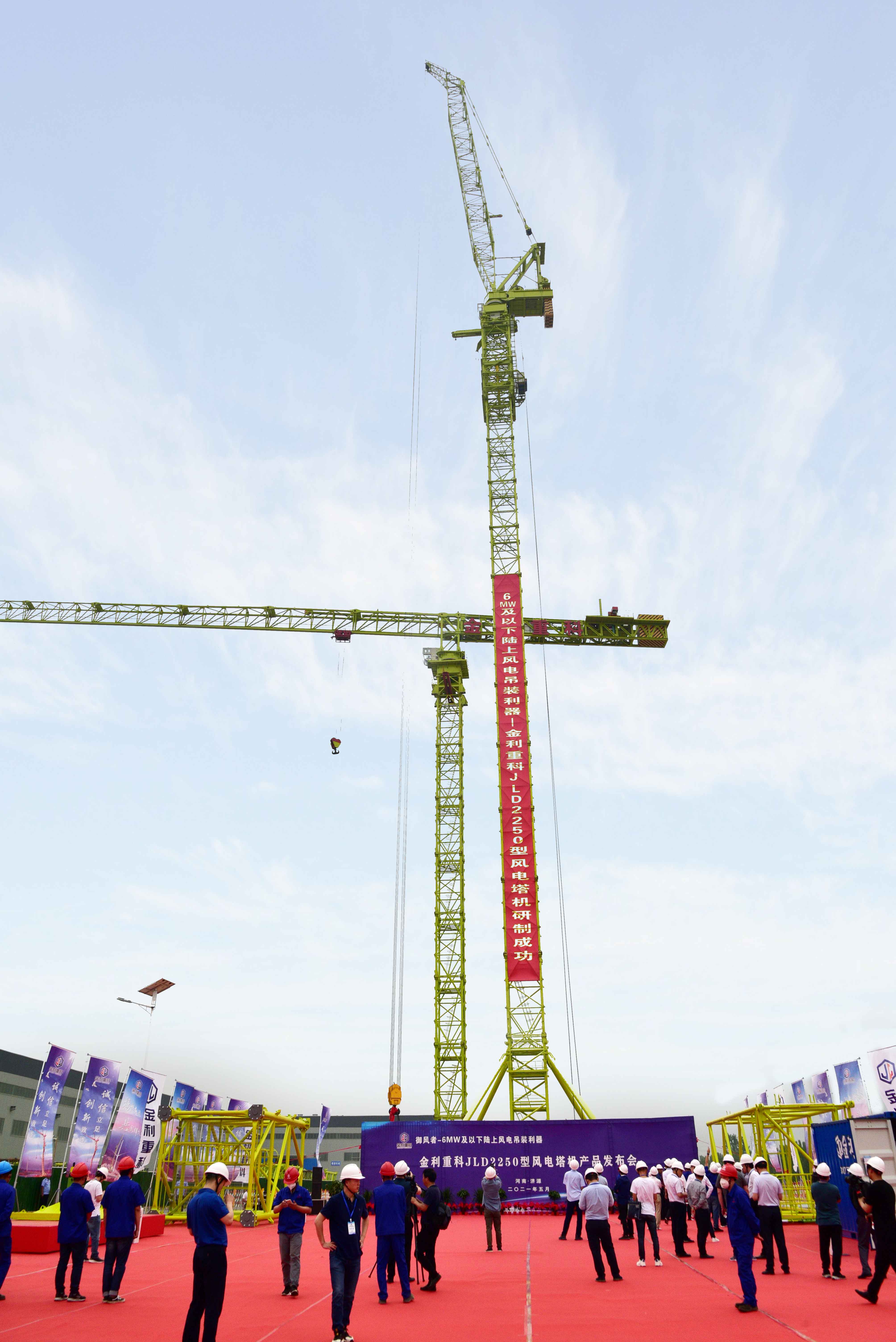 本次发布会全新推出的JLD2250型风电塔机最大起升高度突破198米,最大起重量可达180吨,可全面覆盖6MW及以下低风速高塔架风电机组吊装。是在无附着情况下起升高度最高、吊装重量最重的风电吊装专用装备,产品性能参数创国际同类产品之最。