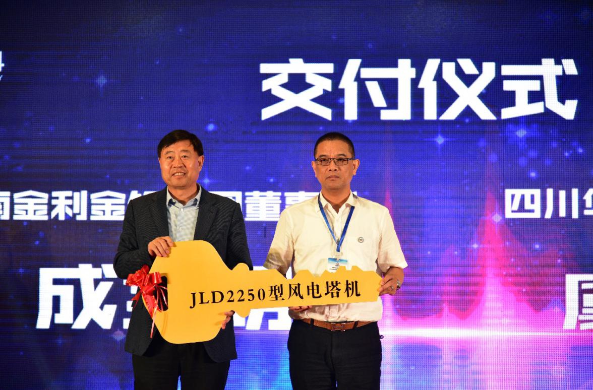 伴随着首台JLD2250型风电塔机的试验成功,河南金利金铅集团董事长暨河南金利重工科技有限公司董事长成全明先生为首台订单客户四川华东电气集团有限公司董事长虞文权进行了现场交付仪式。