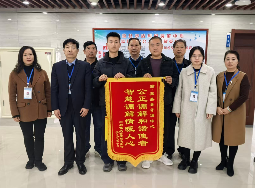 日前,新乡市获嘉县中和镇居民杨某及亲属来到获嘉县矛调中心,赠送一面“公正调解和谐使者 智慧调解情暖人心”的锦旗。就同一事项,获嘉某公司也赠送一面“一心一意为人民 尽心竭力办实事”的锦旗。这背后有什么故事呢?