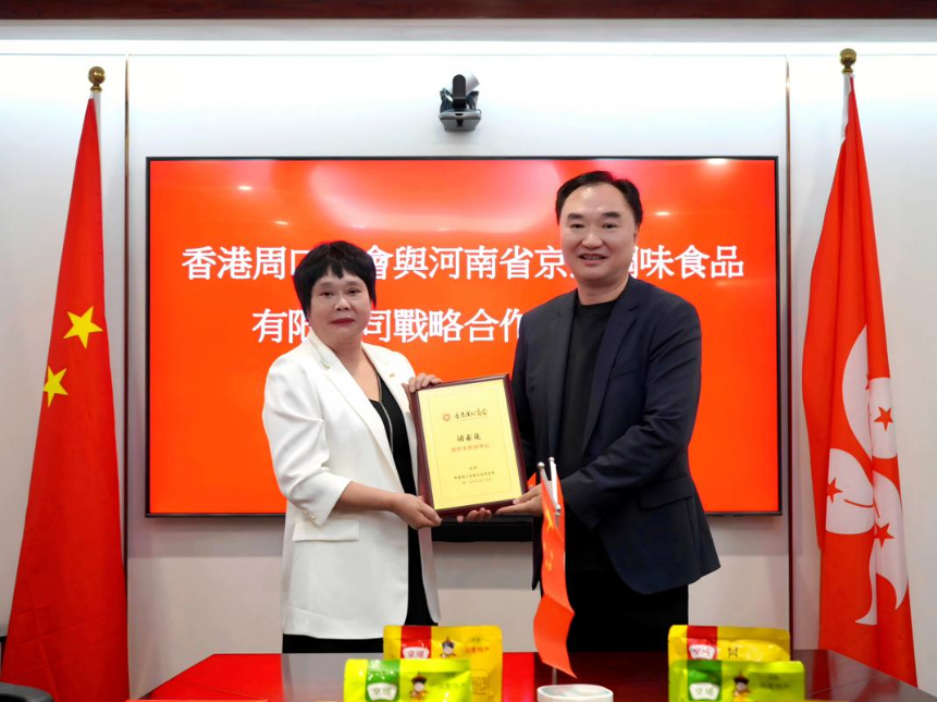 值得关注的是,在双方战略合作达成的同时,胡素花女士也正式受聘担任香港周口商会副会长。对此,胡素花表示衷心感谢商会的信任,特别感谢香港周口商会会长高波及中国香港食品安全交流协会商务总监高永强的大力支持。她深情的说,以后京遥在香港也有家了,她会亲手为在港的周口老乡们熬制最正宗的西华逍遥镇胡辣汤喝,后续京遥公司将凭借其深厚的品牌积淀、行业领先地位和卓越的品质管控能力,积极携手香港周口商会,与香港多元饮食文化深度融合,共创双赢。