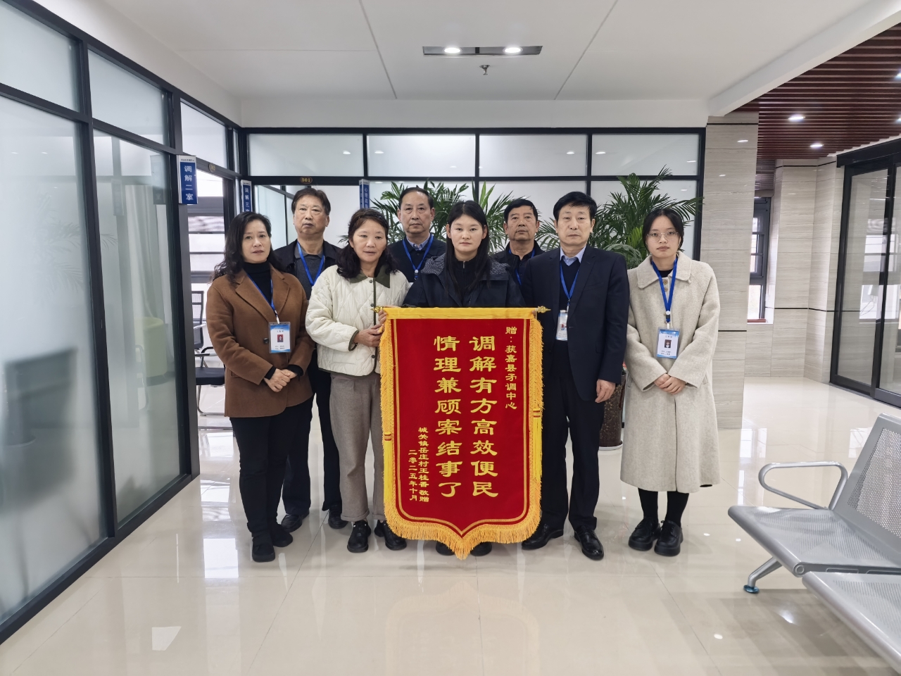 2025年10月29日,获嘉县矛调中心主任王随芳召集调解小组及当事人双方签订“校方一次性赔偿王某医疗费、护理费等各项费用共11000元”的调解协议,双方对调解结果均表示满意。收到赔偿款后,王某及亲属特到获嘉县矛调中心赠送感谢锦旗!(通讯员:王凯奇 张珂瑜)