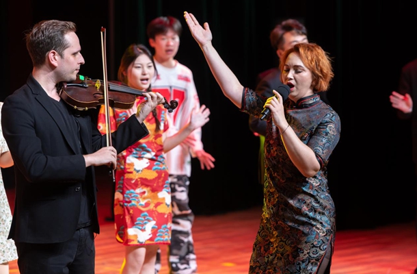 随后的文艺演出由河南艺术职业学院师生与外籍教师联袂呈现,以艺术为媒,生动展现了中外文化交融互鉴的和谐乐章。