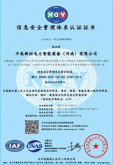 平高新松搭建专业化科研与实验基地,配备完善的机器人检测及试验验证平台,构建起从关键技术研发、样机试制、第三方检测到工程示范的全流程创新链条。平高新松还建立健全质量、环境、职业健康安全及信息安全管理体系,积极参与国家标准与行业标准制定,牢牢抢占行业发展话语权。同时,深耕“产学研用”协同创新生态,与高等院校建立深度合作机制,聚力攻克行业核心技术难题,为持续输出原创核心技术、培养复合型专业人才注入强劲动力,为企业高质量发展筑牢坚实根基。