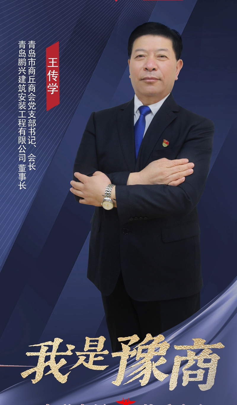 王传学,河南省宁陵县人,共产党员,现任青岛鹏兴建筑安装工程有限公司董事长、青岛市商丘商会党支部书记、会长。从吃不饱饭的农村少年到带领数百乡邻闯荡青岛的企业家,从握刨子的木工学徒到执掌建筑企业的老板,四十余载风雨兼程,他以“草根成长、信用为本”的初心,在黄海之滨书写了一段豫商奋斗史。