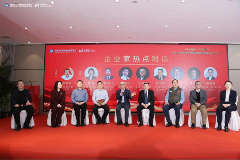 在企业家热点对话环节,汉威科技集团股份有限公司董事长任红军、山西中德投资集团董事长程田青、新天科技总经理常明松、郑州君芝友纺织品董事长顾陆军、开封华瑞化工董事长夏鸿飞、安图生物副总经理吴学炜、郑州万通汽车轮胎总经理瞿佳、浦发银行郑州分行副行长黄姗姗等围绕专精特新发展路径展开深度交流。