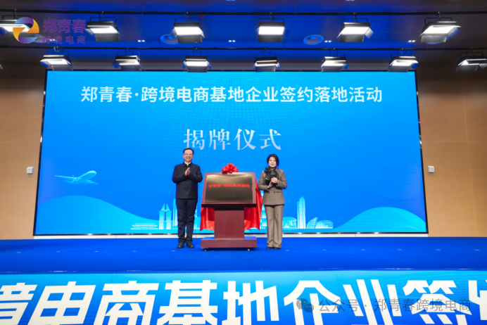 1月20日,郑青春跨境电商基地揭牌仪式暨企业签约入驻活动在二七区中原数字经济科创园举行。本次活动以“数字引领・豫见世界”为主题,来自全国各地的政企学界代表齐聚一堂,共话跨境电商发展新机遇。郑州市政协主席杜新军,郑州市政府副市长马志峰,全球跨境电子商务协会执行主席、深圳市跨境电子商务协会会长王馨出席活动。活动由郑州市政府副秘书长王政主持。