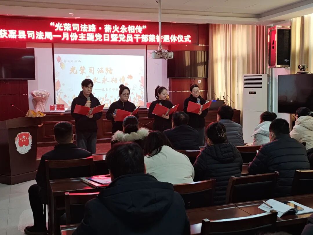 为切实增强退休党员干部的政治荣誉感、组织归属感和生活幸福感,传承老同志爱岗敬业的光荣传统与优良作风,日前,获嘉县司法局举行“光荣司法路,薪火永相传”主题党日暨党员干部荣誉退休仪式,共忆奋斗岁月,共话薪火传承。