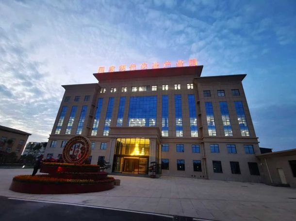 延津国家现代农业产业园办公楼在清晨的天空下庄严肃穆。