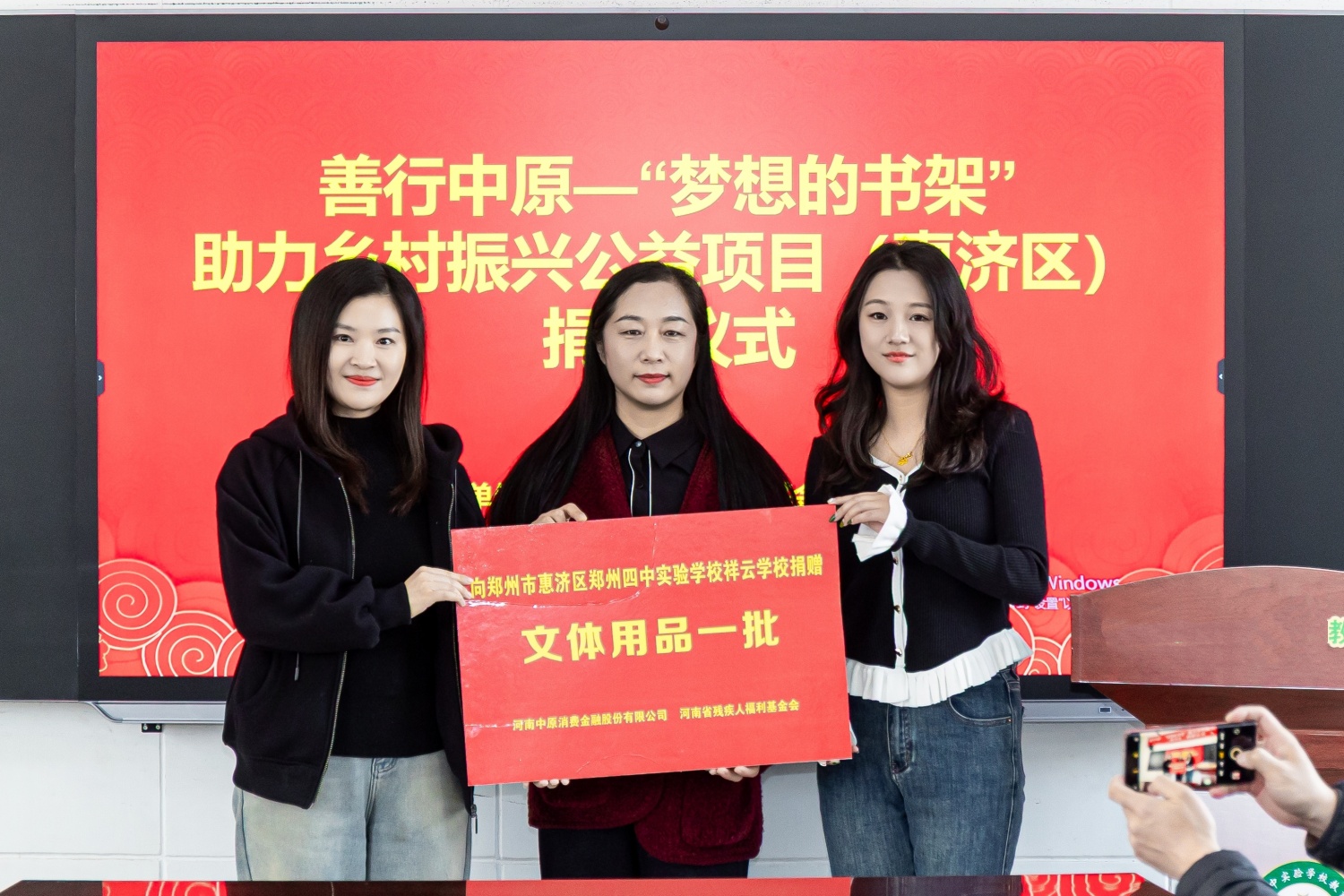 暖阳漫洒校园,笑语浸润心房。在“3·15”国际消费者权益日来临之际,中原消费金融携手河南省残疾人福利基金会,走进郑州四中实验学校祥云学校,再度启航“梦想的书架”公益项目,为乡村孩子们送去图书、书架及手工材料,以书香润泽童心,以美育启迪智慧,以金融知识守护成长,为孩子们的梦想插上翅膀。