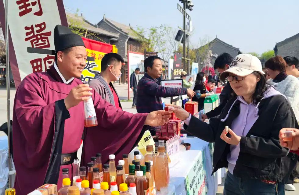开幕式后,上演了一系列接地气、聚人气的清明特色文艺节目,现场还火热开展百企进启封商业推介活动。(图/李新义)